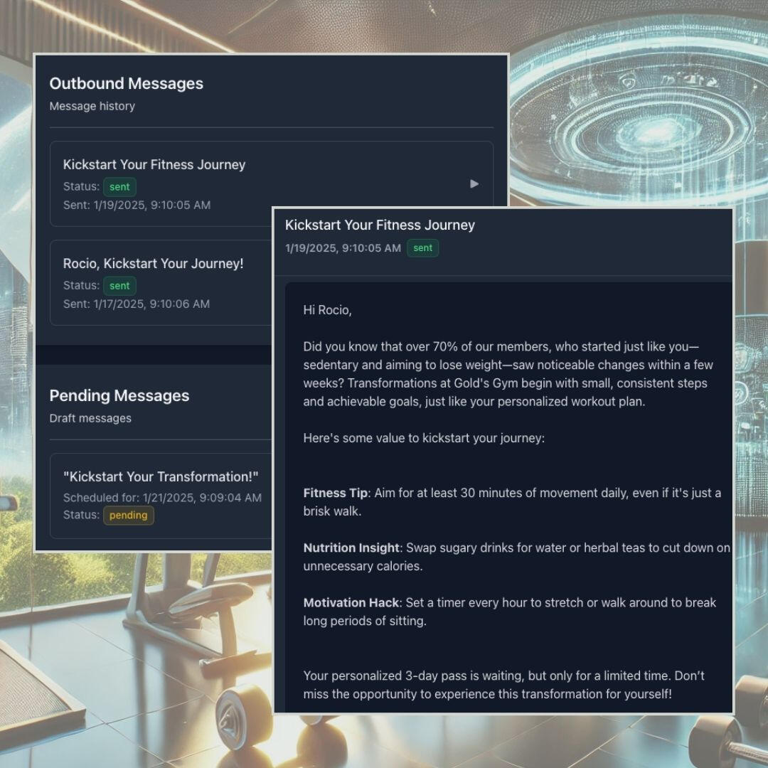 Every member gets a tailored workout plan, habit coaching, class suggestions, and check-ins — all managed automatically by AI.
